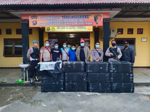 Kapolres Tanjung Jabung Timur (Tanjabtim), AKBP Deden Nurhidayatullah SH SIK melaksanakan Press Rilis penangkapan 12 Box berisi Benih Lobster, Jum’at (19/03/2021).