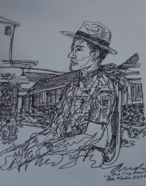 Usai berkeliling ke berbagai sudut di komplek RPH, “kesebelasan” IDB itu masing-masing memilih tempat untuk berkreasi, melukis obyek bernilai heritage tersebut dari sudut-sudut   yang menarik dan diminatinya. Di jeda waktu mereka mendaulat “Pa Kadis” sebagai model lukisan dan “dikeroyok” oleh para seniman yang ternyata juga piawai melukis profil Gin Gin Ginanjar dengan akurat dan cepat.