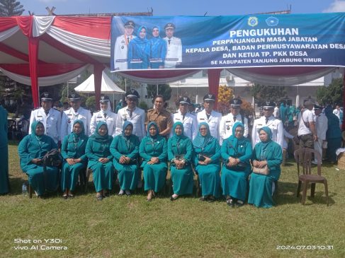 Bupati Kabupaten Tanjung Jabung Timur (Tanjab Timur) H. Romi Hariyanto, melaksanakan Pengukuhan Perpanjangan masa Jabatan Kepala Desa (Kades) dan Badan Permusyawaratan Desa (BPD) Se-Kabupaten Tanjab Timur di Lapangan Kantor Bupati Rabu 3 Juli 2024 pagi.